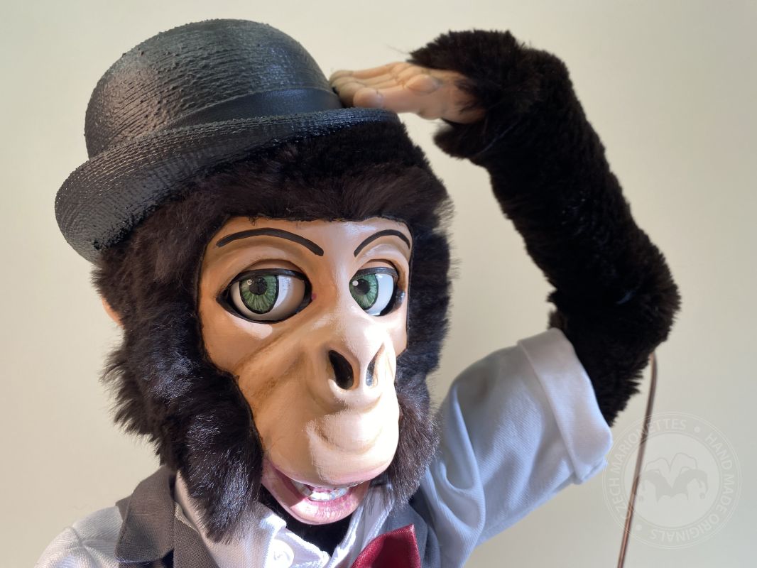 Questa fantastica statuetta è stata realizzata sulla base delle foto su richiesta di un cliente e siamo abbastanza soddisfatti del risultato. Questa bellissima creazione dimostra che possiamo uscire dagli schemi e lavorare su un ordine impegnativo come questo, non una tipica marionetta. Tuttavia, possiamo trasformare questa Scimmia anche in una marionetta a filo. Questa scimmia è gestita come una marionetta ventriloqua. Abbiamo sviluppato un meccanismo che ti consente di effettuare movimenti fluidi e facili.