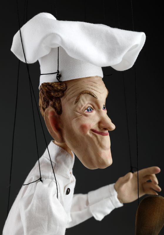Il burattino sotto forma di uno chef benevolo troverà sicuramente un posto per ogni amante della buona tavola.
