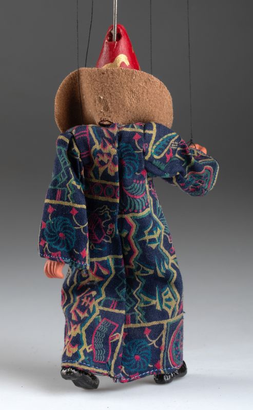 Ogni dettaglio di questa marionetta, dal viso dipinto con cura ai complessi motivi sul mantello, è stato realizzato con grande attenzione all'artigianato. Questo mago è ideale per collezionisti e appassionati di marionette che desiderano portare un tocco di magia e mistero del teatro delle marionette tradizionale nei loro interni.
