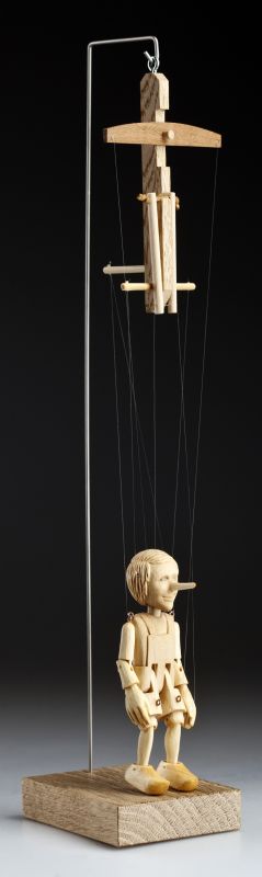 Excellent puppet, made of linden wood. Despite its small size, this puppet is fully functional and very well constructed. The movements are very fluid. I like the unpainted wood finish. I think this finish suits a Pinocchio figure very well. Congratulations to the artist who designed and built it.