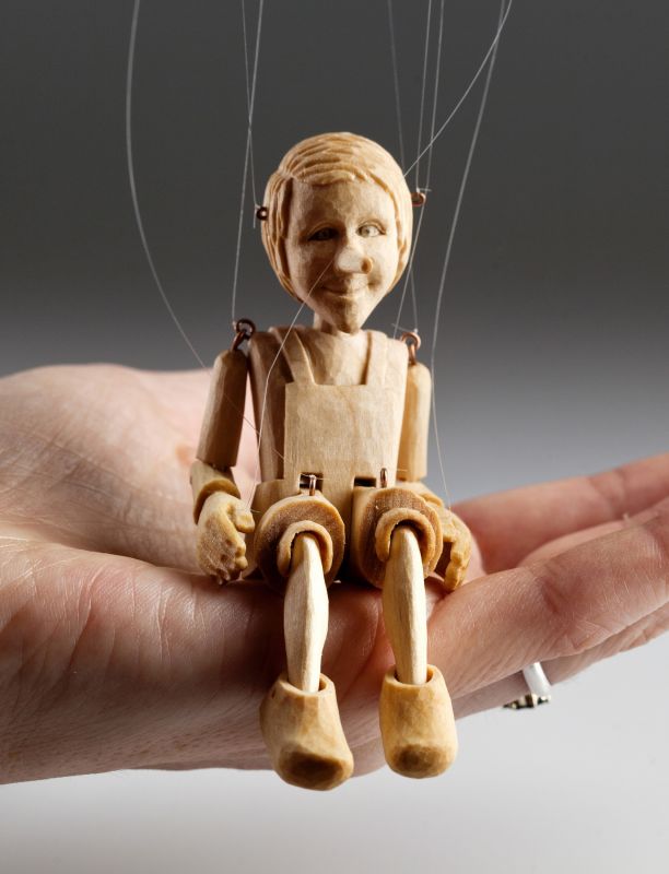 Dimostrazione di grande scultura e incredibile pazienza. Un capolavoro della burattineria ceca. Marionetta completamente funzionale di meno di 10 cm.