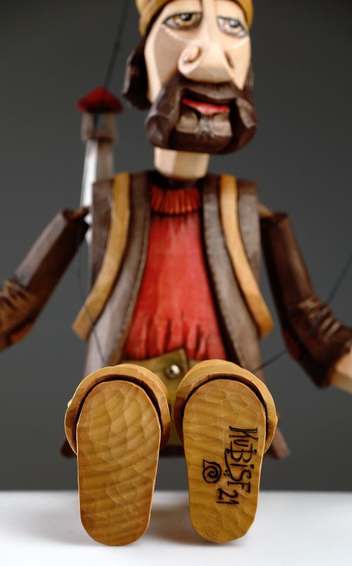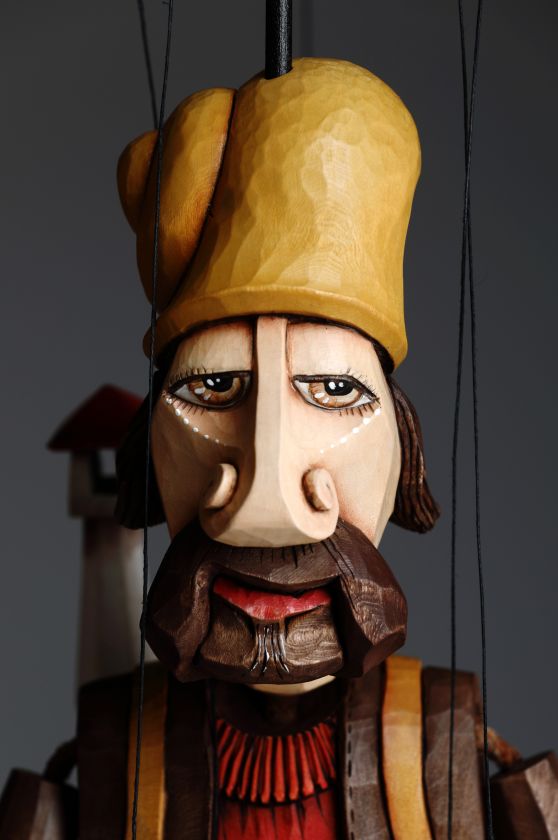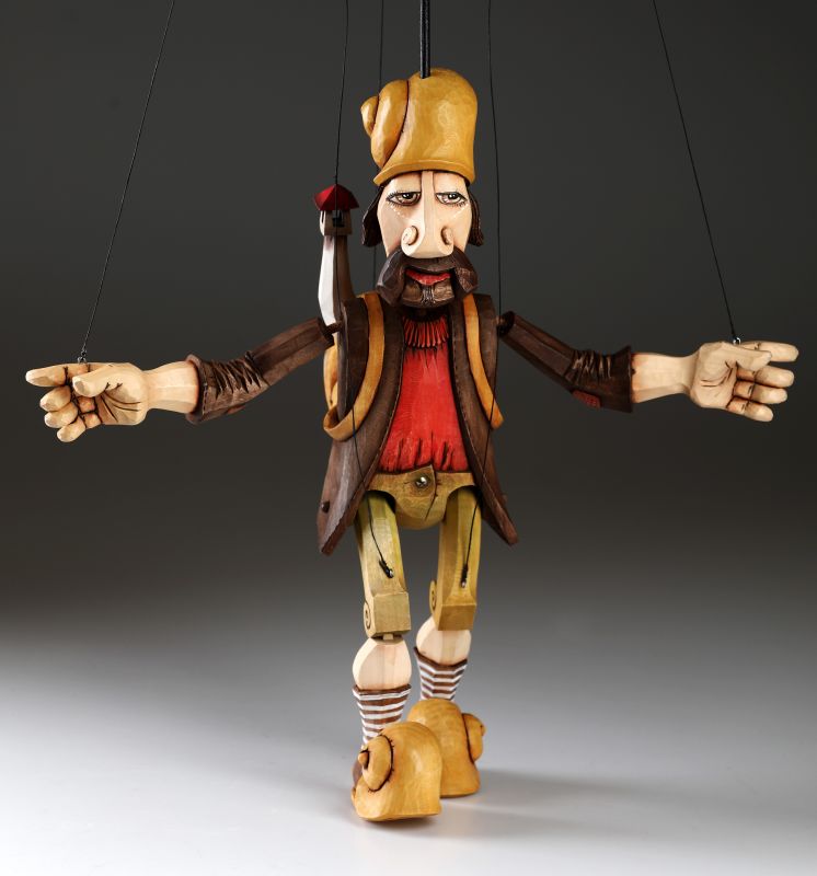 Il burattino è su un filo, ha una classica legatura tradizionale, si muove bene in termini di controllo, l'ampiezza di movimento è determinata dall'anatomia e dal numero di fili, quindi basilare. E l'impressione estetica? Assolutamente perfetto, punti in più per una nuova idea :)