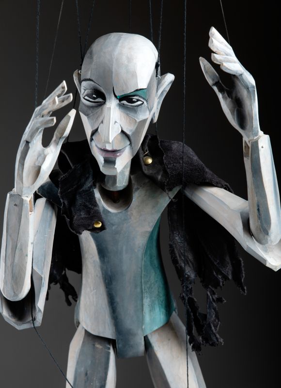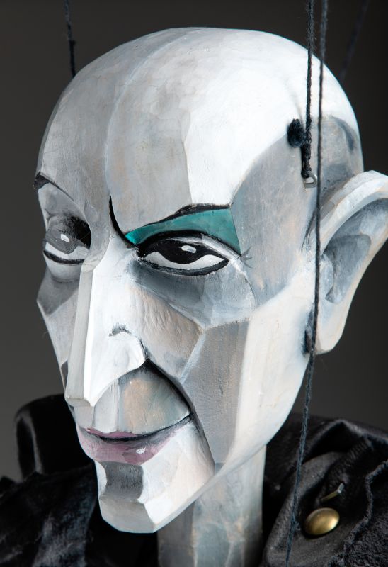 Scopri l'eleganza inquietante di questa squisita marionetta in legno, scolpita a mano dal rinomato artista Antonin Muller. Questa marionetta unica, realizzata in uno stile cubista distintivo, incarna il fascino misterioso di un vampiro. Ogni dettaglio, dai tratti angolari del viso all'abbigliamento meticolosamente dipinto, mette in mostra la maestria e la visione artistica di Muller.