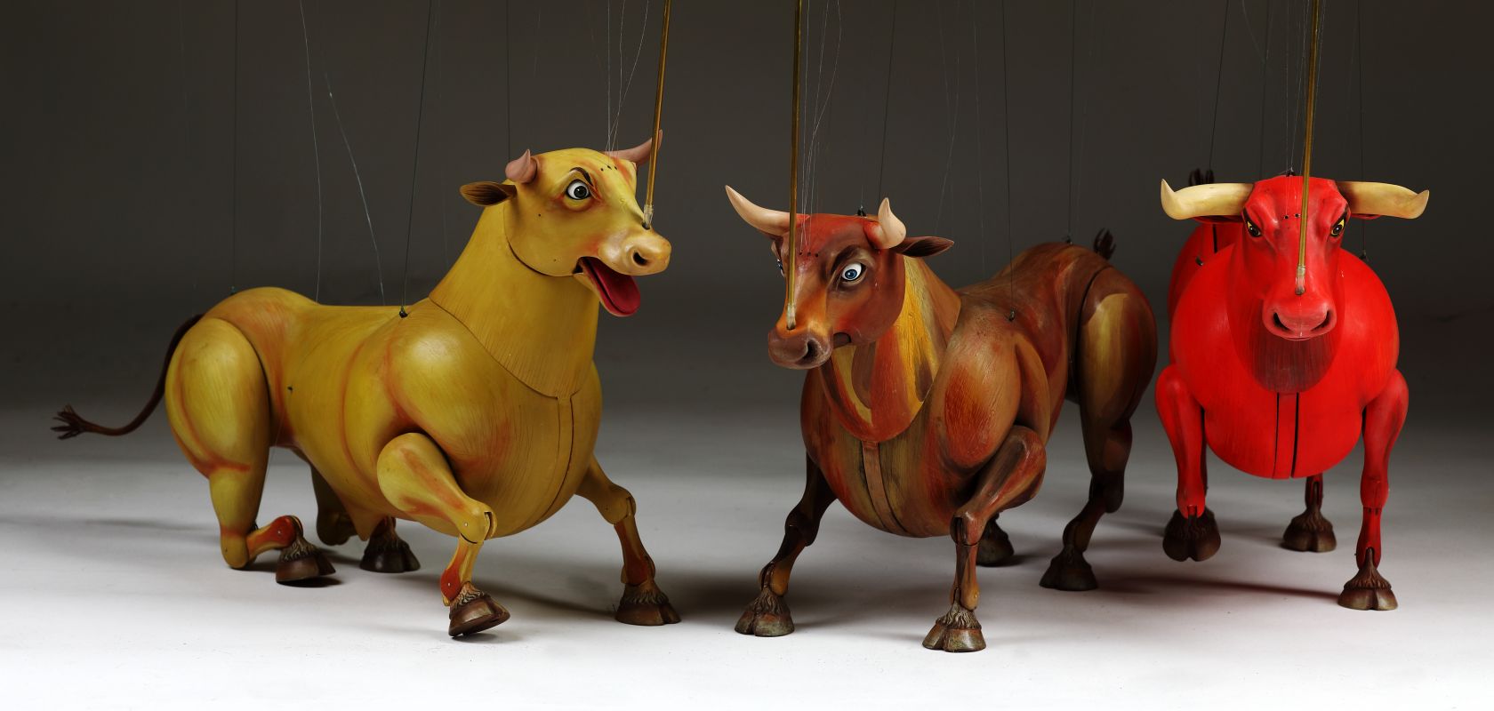 Le marionette dei tre tori sono impressionanti capolavori intagliati a mano, realizzati da uno dei più talentuosi marionettisti, Václav Krčál junior. Queste marionette sono incredibilmente realistiche e uniche