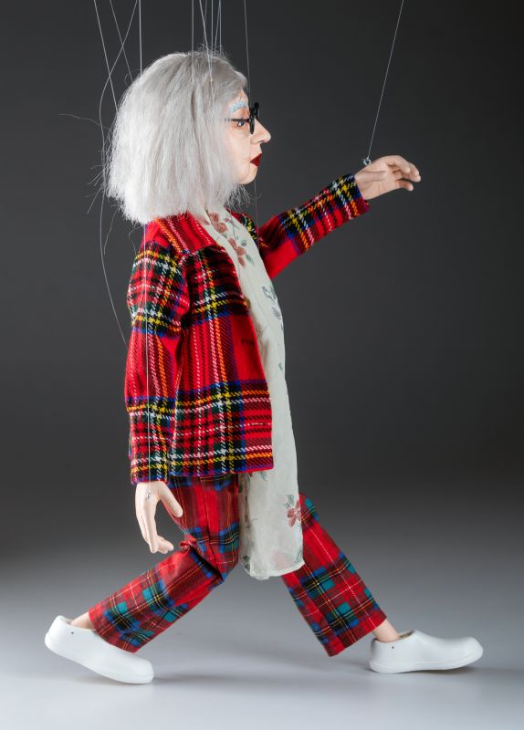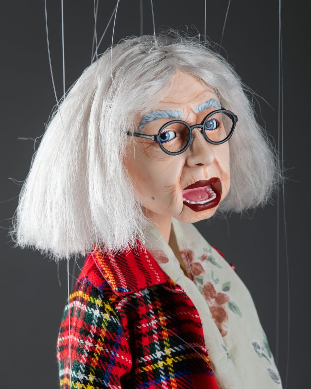 Creazione su misura, questa marionetta è sia un omaggio all'eredità artistica di Rose Wylie sia una testimonianza dell'abilità artigianale della bottega CzechMarionettes.cz: un connubio di ritrattistica, performance e tradizione.