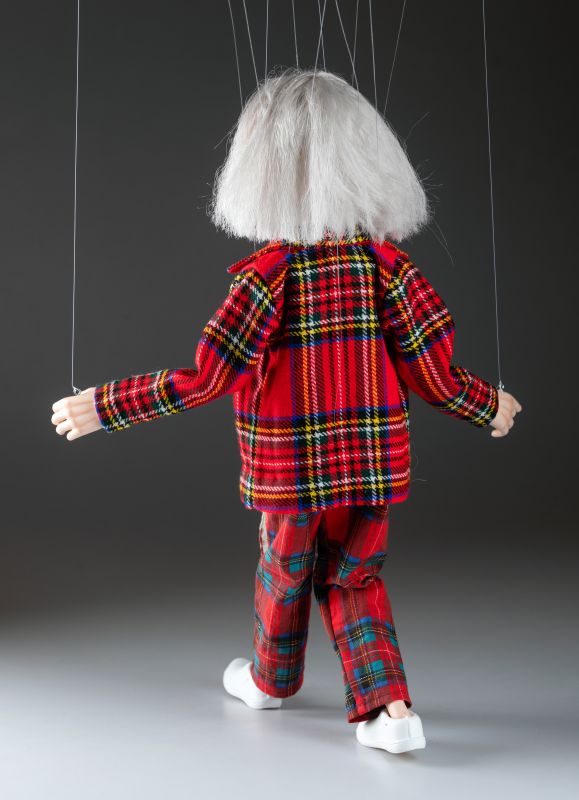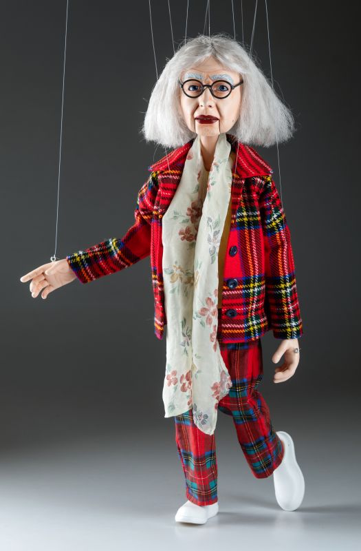 Realizzata nel laboratorio della gilda delle CzechMarionettes.cz, questa marionetta personalizzata è un'interpretazione ritrattistica della celebre pittrice britannica Rose Wylie. Nota per il suo stile audace e giocoso e per la sua presenza distintiva, lo spirito di Wylie è catturato qui sotto forma di un burattino finemente scolpito, che gli conferisce il suo carattere e il suo fascino inconfondibili.